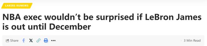 曝詹姆斯可能缺席至12月!NBA高管:他的身体恢复速度已不如从前